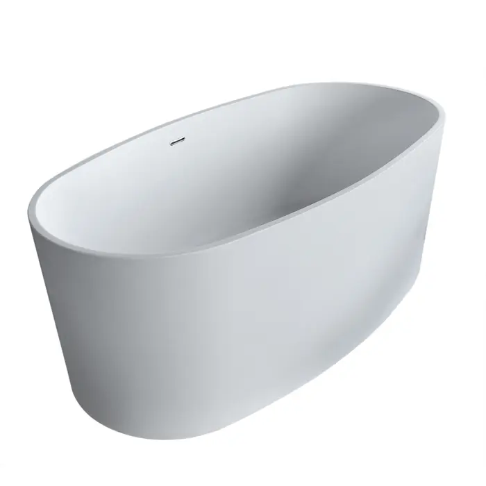 Kurow freestanding series style can be interpreted as both, contemporary and classic design allowing full enjoyment of deep soaking comfort.For more information please call 866-588-8008Matte white finishCenter drainOval shape to exibit the smooth stylistic appealDesigned for floor or wall mounted filler spoutIntegrated Chrome finish overflow slit and Push operated drain includedErgonomic design cradles the body's form for maximum comfortSoaking bathtub for a deep, full body experienceSmooth, solid surface, man made stoneSafe for bathing salts and aromatic oils for a deep, relaxing soakQuick and easy installationFreestanding for versatile installation