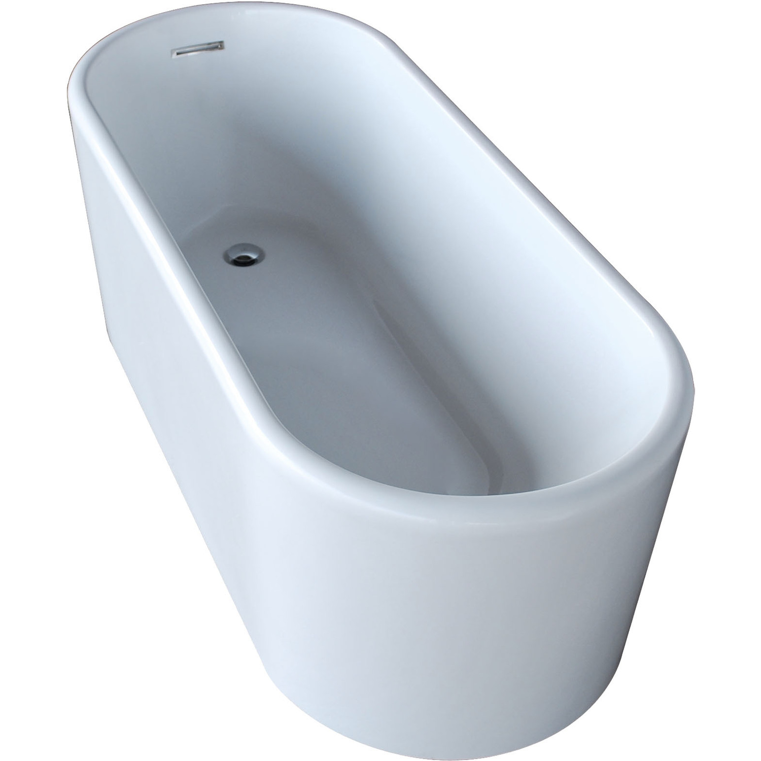 Enza freestanding series style can be interpreted as both, contemporary and classic design allowing full enjoyment of deep soaking comfort.For more information please call 866-588-8008High gloss white finishCenter drainOval shape to exibit the smooth stylistic appealDesigned for floor or wall mounted filler spoutIntegrated Chrome finish overflow slit and Push operated drain includedErgonomic design cradles the body's form for maximum comfortSoaking bathtub for a deep, full body experienceStunning glossy solid acrylic surfaceSafe for bathing salts and aromatic oils for a deep, relaxing soakQuick and easy installationFreestanding for versatile installation