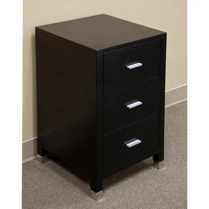 - Nickel finish hardware and chrome leg caps