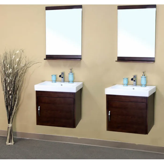 Bellaterra Home 48.8 In Double Wall Mount Style Sink Solid Wood Bathroom Vanity Walnut 203136-D