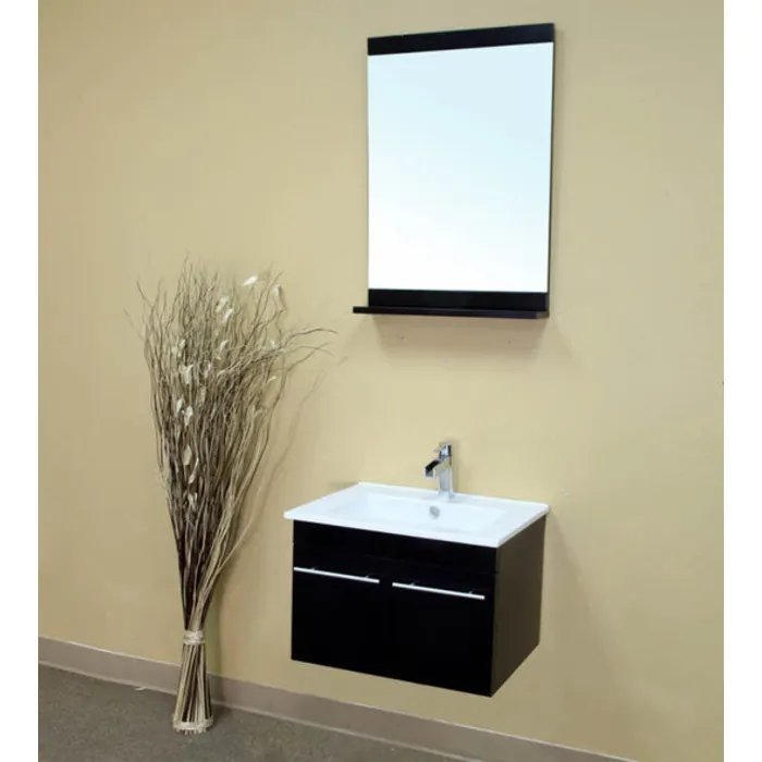 Bellaterra Home 24.4 In Single Wall Mount Style Sink Solid Wood Bathroom Vanity Black 203172-S