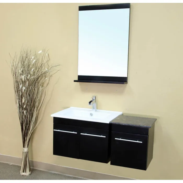 Bellaterra Home 39.4 In Single Wall Mount Style Sink Solid Wood Bathroom Vanity Black 203172-SET