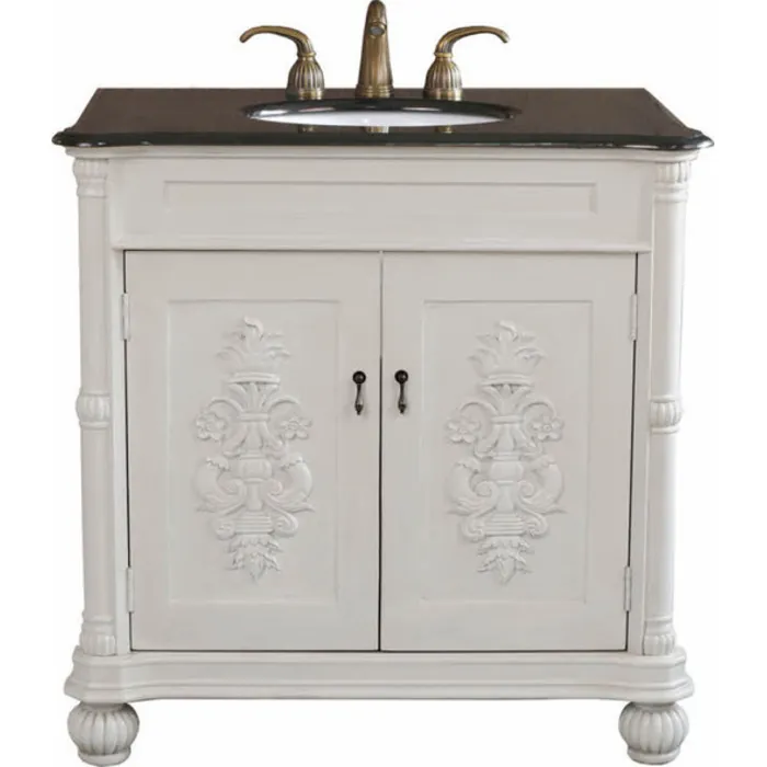 Bellaterra Home 36 In Single Sink Solid Wood Bathroom Vanity Antique White 602335-AW