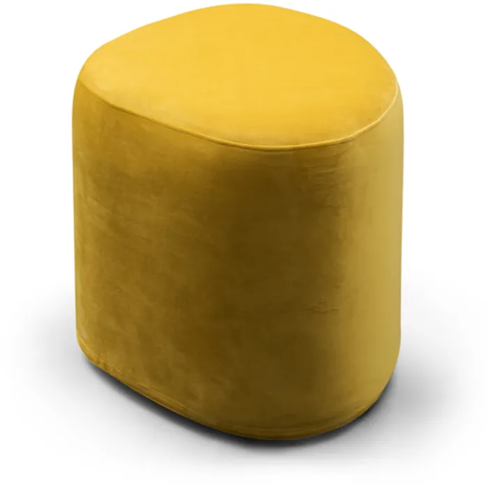 - Ottoman small Cylinder shape covered in soft Microfiber Yellow fabric upholstery, also available in matching Lune shape. Dimensions: L 21'' x W 16'' x H 16''