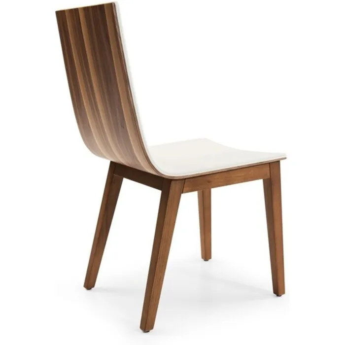 - The Eva dining chairs were designed as an option for the Dakota Dining table (sold sep). The light walnut frame goes all the way up the back of the chair. The front of the chair is covered in a high quality white PU.