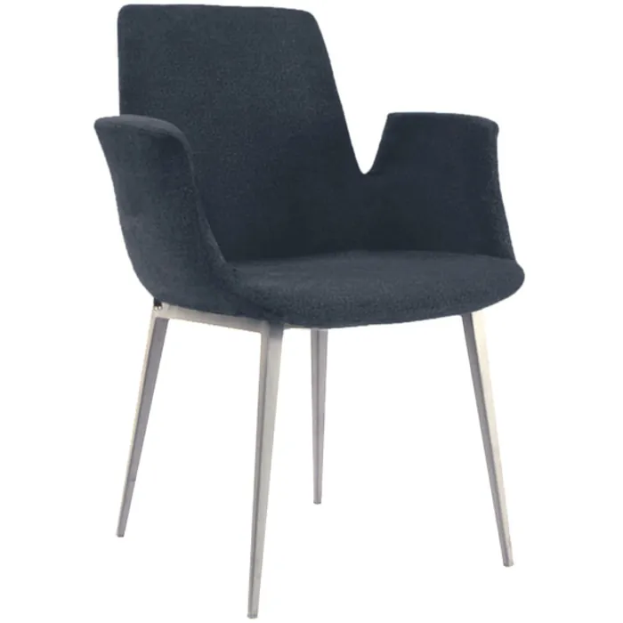 The Gabriella dining room chair allures guests with its clever design and fusion of various elements such as fabric and chrome. Its eye catching- wider-than most dining seat – pairs beautifully with the chair’s slim linear legs, eliminating bulkiness and allowing full visual display of any dining table base its paired with.