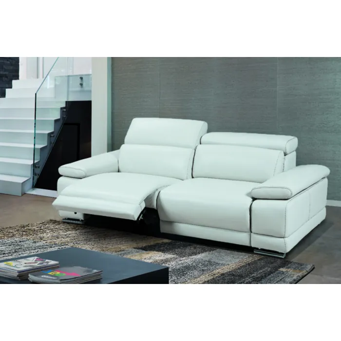 Bellini Modern Living Grace Electric Motion Sofa White #35612 With Manual Adjustable Neck Rest Cushions, include battery pack for 2 seats Grace 3S WHT