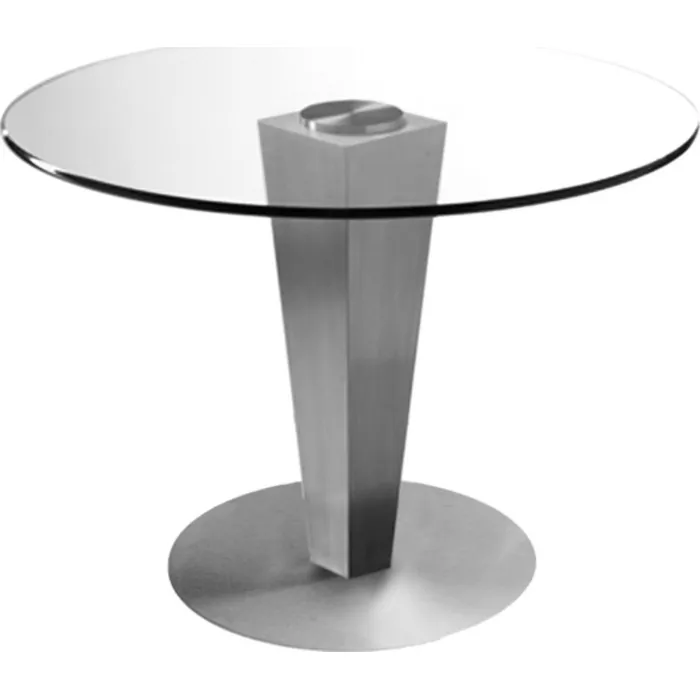 Top Finish: ClearBase Finish: Brushed stainless steelDistressed: NoTop Material: Glass
