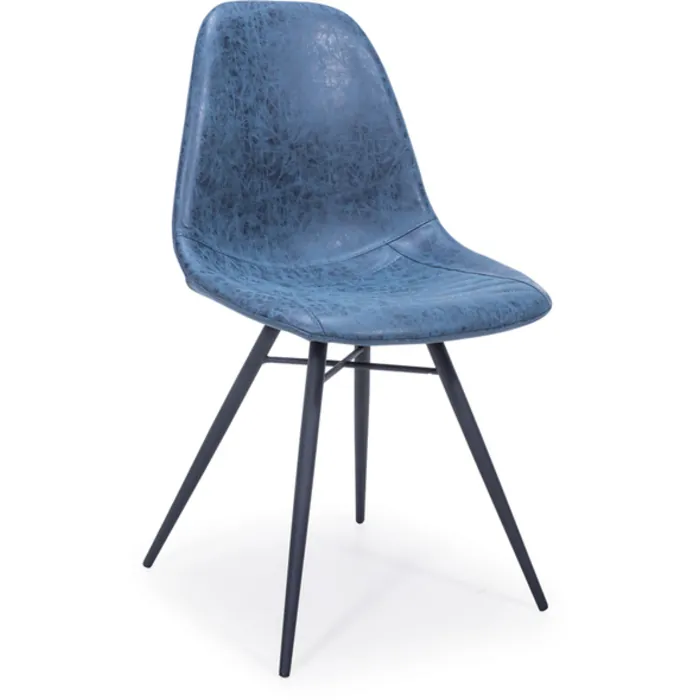 - Dining Chair in Dark Blue Vintage Polyurethane cover & Same Color stitching with Black Powder Coated frame. Dimensions: L 21'' x W 17'' x H 31''