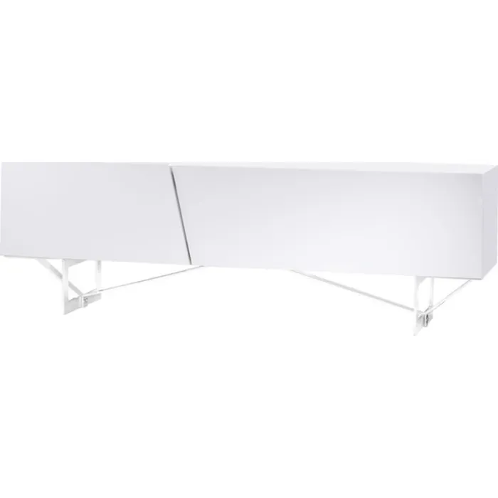 Recommended TV Type: Flat ScreenTV Size Accommodated: 79"esProduct Type: Entertainment centerDesign: Enclosed storageFinish: White gloss lacquerGloss Finish: YesNumber of Items Included: 1Style: ModernExterior Shelves: NoDrawers Included: Yes