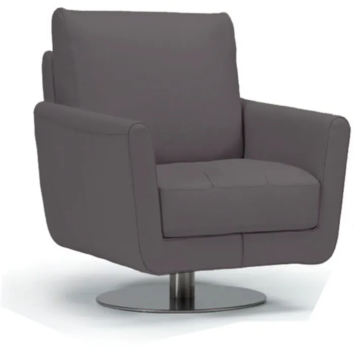 - Why settle when you can double your style and pleasure. Syria swivel chair takes contemporary to another level with its full grain leather upholstery design, incorporating the cool look you love. Its unique smooth 360-degree turning radius swivel, makes this accent piece very versatile and a must have in every home.