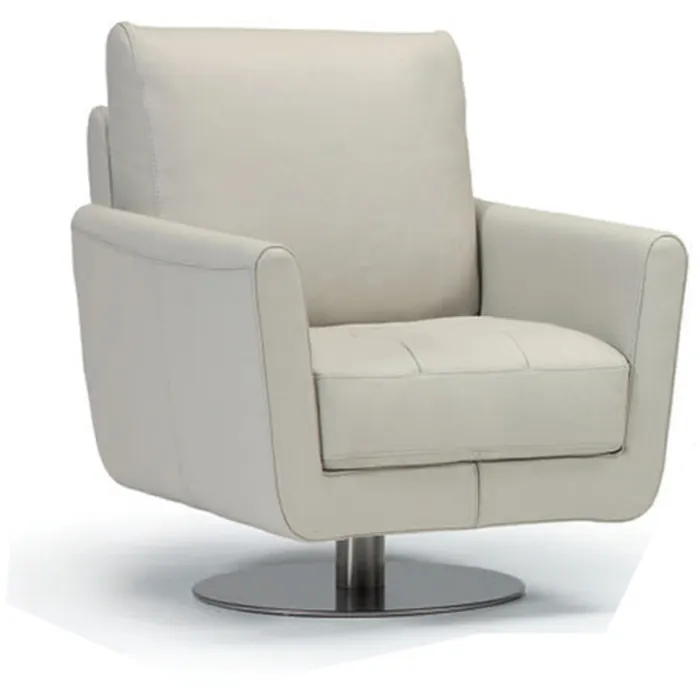 - Why settle when you can double your style and pleasure. Syria swivel chair takes contemporary to another level with its full grain leather upholstery design, incorporating the cool look you love. Its unique smooth 360-degree turning radius swivel, makes this accent piece very versatile and a must have in every home.