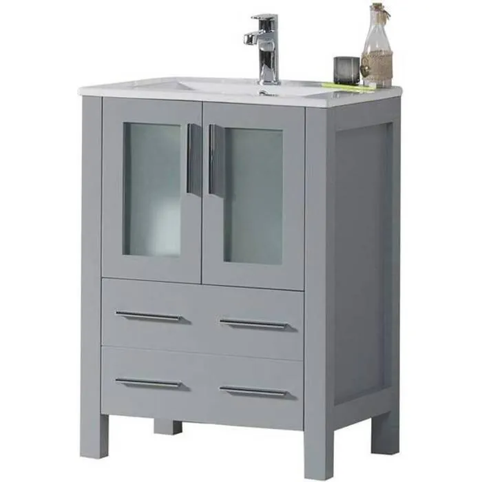 Blossom 24 Inch Bathroom Vanity with Ceramic Sink - Metal Grey 001 24 15 C