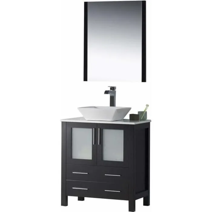 Blossom 30 Inch Bathroom Vanity with Ceramic Vessel Sink & Mirror - Espresso 001 30 02 V M