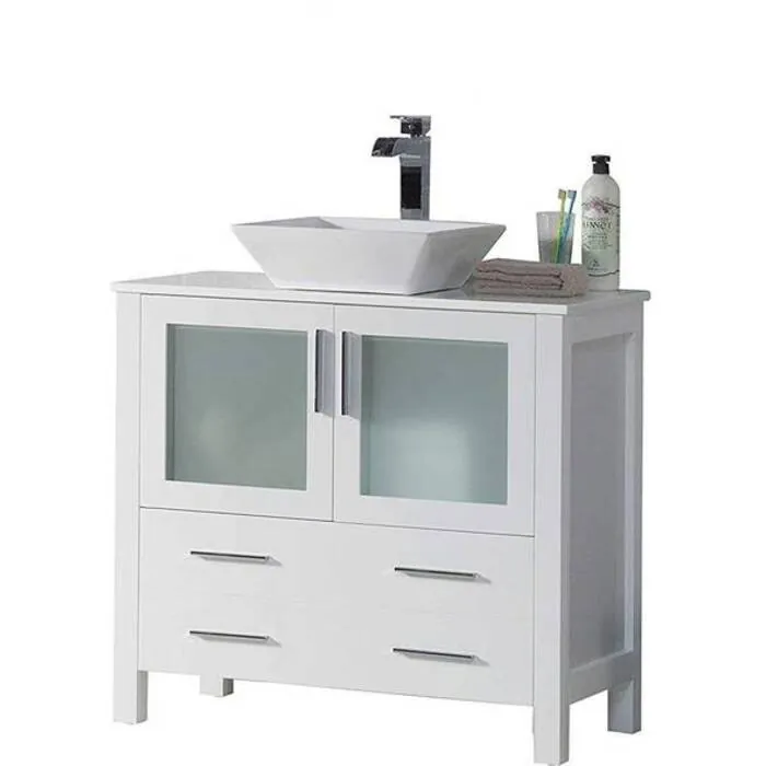 Blossom 36 Inch Bathroom Vanity with Ceramic Vessel Sink - White 001 36 01 V