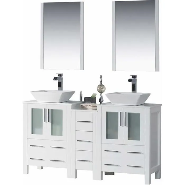 Blossom 60 Inch Bathroom Vanity with Ceramic Double Vessel Sinks & Mirrors - White 001 60S1 01 V M