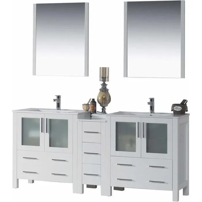 72" Vanity with Ceramic Double Sinks & Mirrors - White