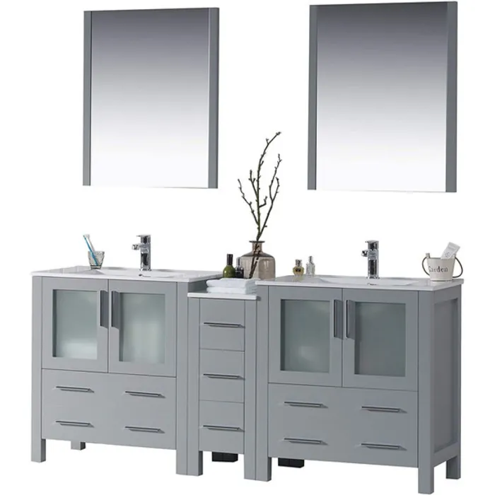 Blossom 72 Inch Bathroom Vanity with Ceramic Double Sinks & Mirrors - Metal Gray 001 72 15 C M