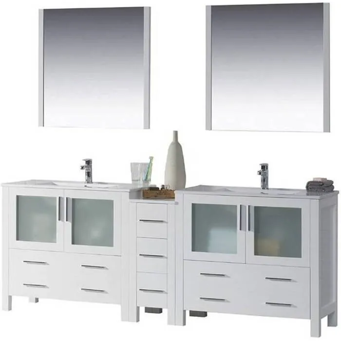 84" Vanity with Ceramic Double Sinks & Mirrors - White