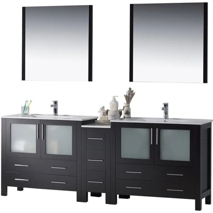 84" Vanity with Ceramic Double Sinks & Mirrors - Espresso