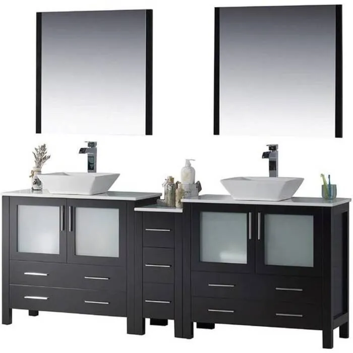 84" Vanity with Ceramic Double Vessel Sinks & Mirrors - Espresso