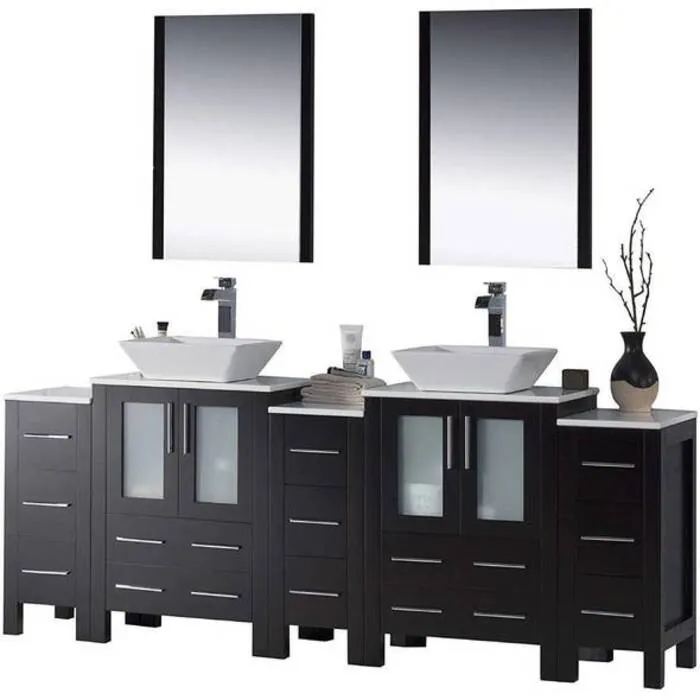 Blossom 84 Inch Bathroom Vanity with Ceramic Double Vessel Sinks & Mirrors - Espresso 001 84S3 02 V M