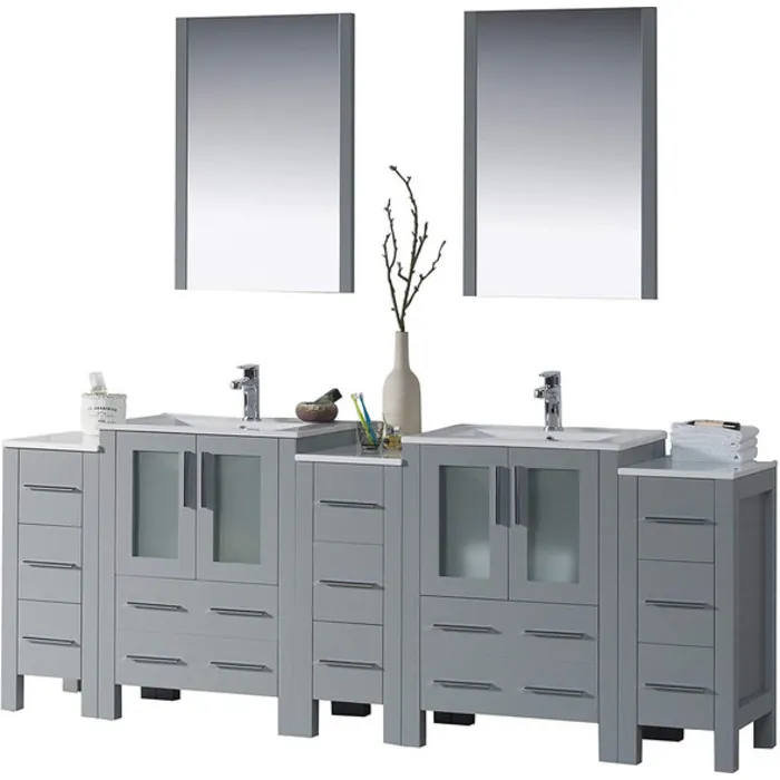 84" Vanity with Ceramic Double Sinks & Mirrors - Metal Gray