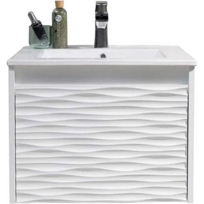 - CLASSIC WALL HUNG Design with waved-shaped front offers sleek appearance with spacious storage spaces. Wall mount small bathroom vanity with sink perfect for powder room vanity.