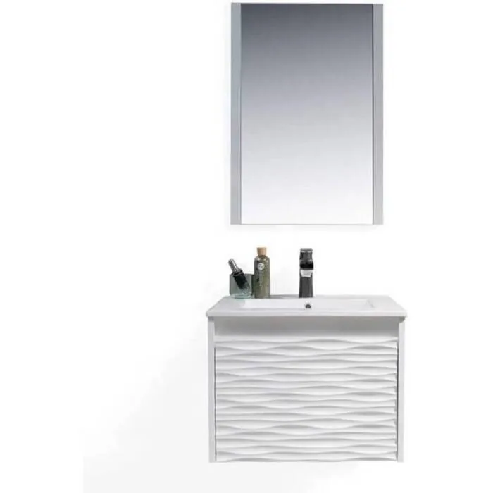 - CLASSIC WALL HUNG Design with waved-shaped front offers sleek appearance with spacious storage spaces. Wall mount small bathroom vanity with sink perfect for powder room vanity.