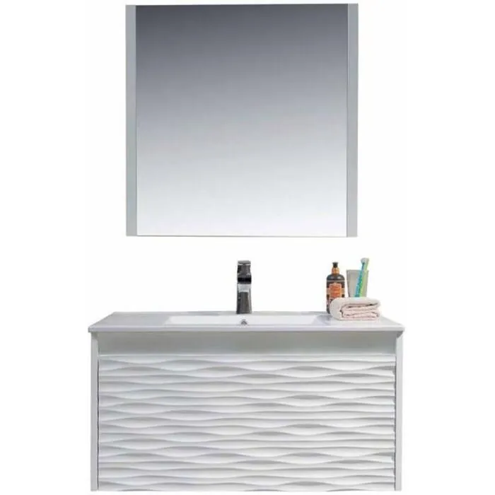- CLASSIC WALL HUNG Design with waved-shaped front offers sleek appearance with spacious storage spaces. Wall mount small bathroom vanity with sink perfect for powder room vanity.