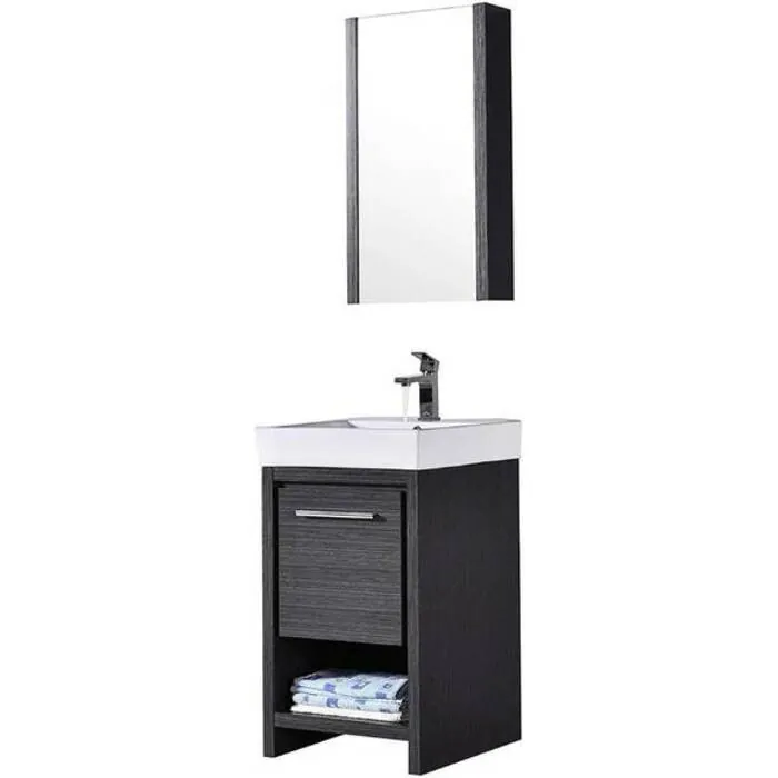 Blossom 20 Inch Bathroom Vanity with Ceramic Sink & Mirrored Medicine Cabinet - Silver Grey 014 20 16 C MC