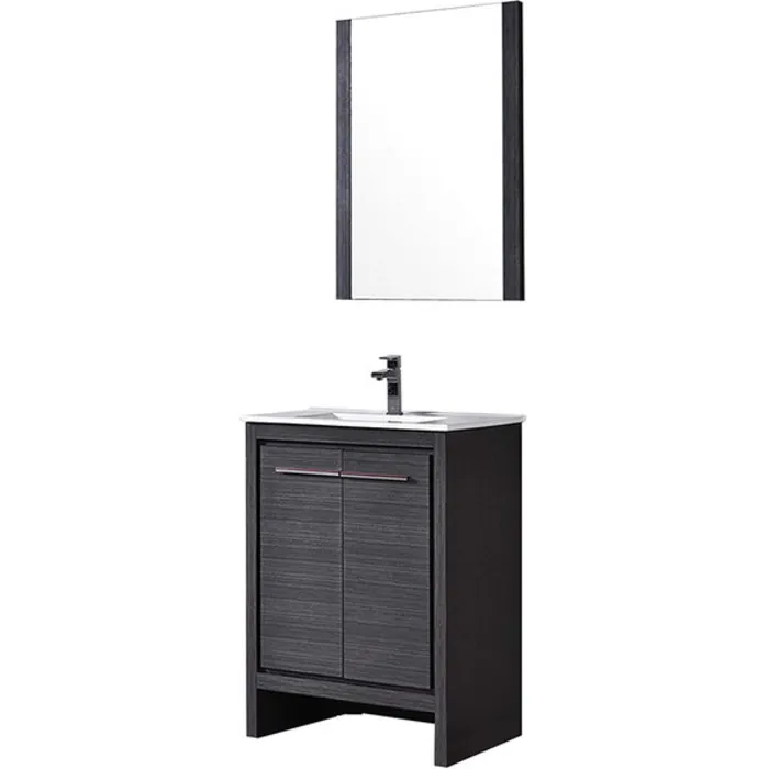24" Vanity with Ceramic Sink & Mirror - Silver Grey