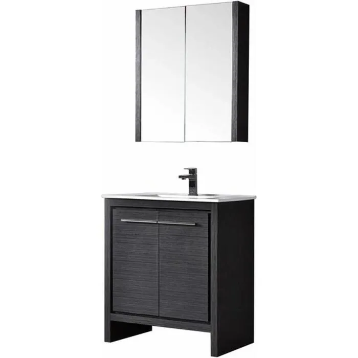 30" Vanity with Ceramic Sink & Mirrored Medicine Cabinet - Silver Grey