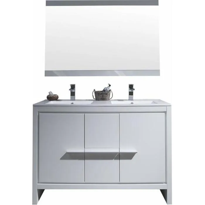 Blossom 48 Inch Bathroom Vanity with Ceramic Double Sinks & Mirror - White 014 48 01D C M
