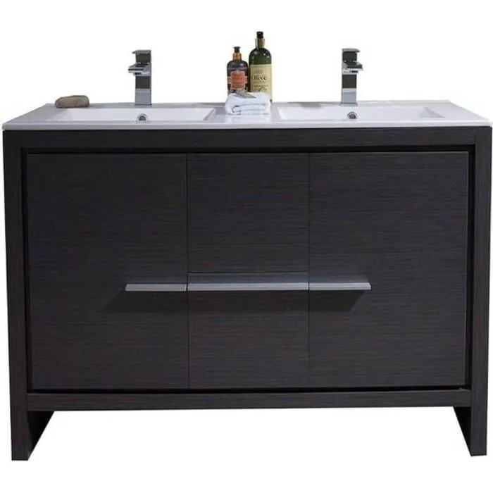 48" Vanity with Ceramic Double Sinks - Silver Grey