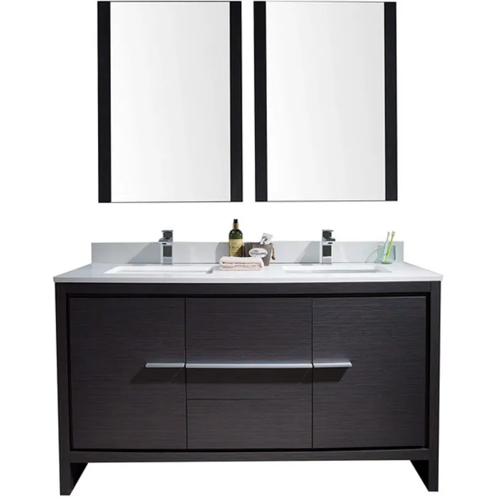 60" Vanity with Ceramic Sink & Mirror - Silver Grey