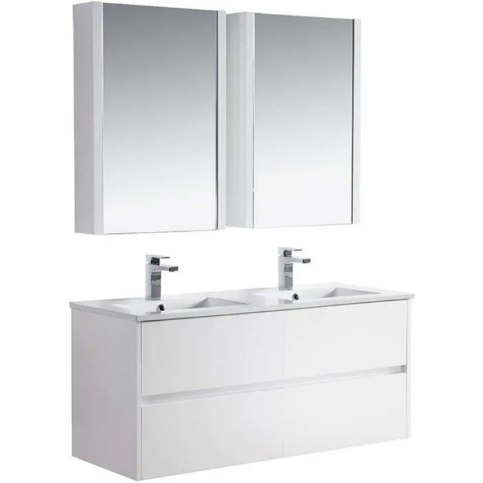 48" Double Vanity with Ceramic Sink & Medicine Cabinet - White