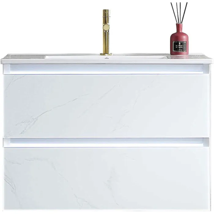 - BUILT-IN LED LIGHTS provide soft guiding lights to grant easy access to bathroom and avoid disturbing your loved ones. EASY CLEAN & Maintenance free glass drawer surfaces.
