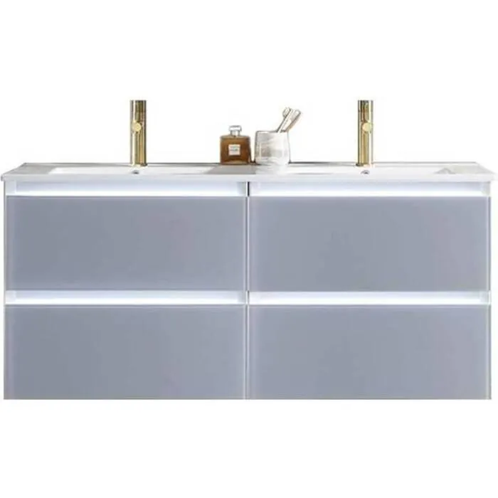 - BUILT-IN LED LIGHTS provide soft guiding lights to grant easy access to bathroom and avoid disturbing your loved ones. EASY CLEAN & Maintenance free glass drawer surfaces.