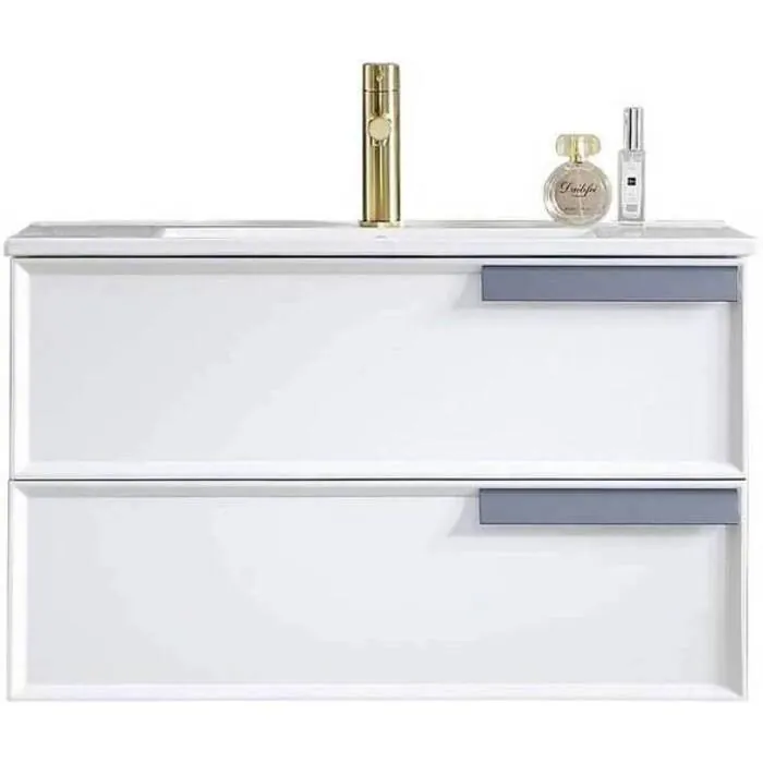 - EASY CLEAN & Maintenance free glossy finish surfaces. FULL EXTENSION DRAWERS offers you spacious storage space and keeping all daily items well organized.