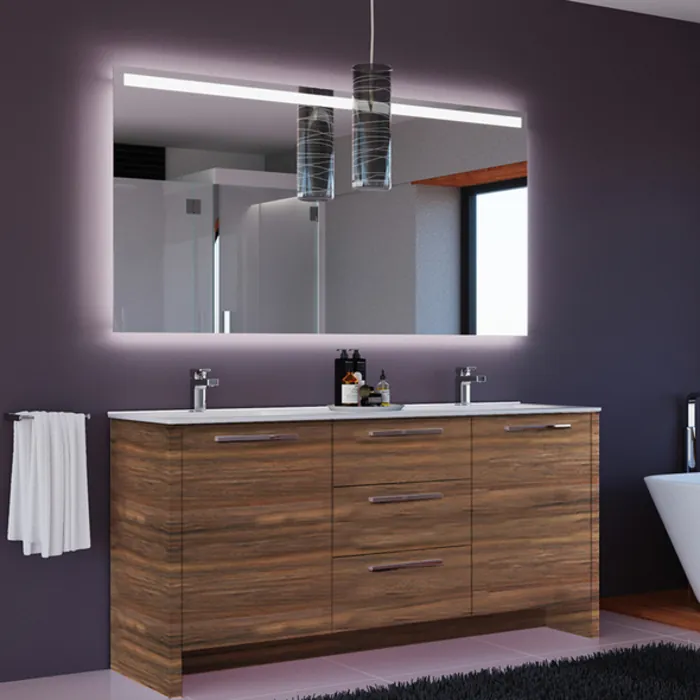 CASA MARE NONA 71" dual hole rectangular sink and freestanding vanity combo bring a touch of beauty to your bathroom with dual white sink and glossy grey main cabinet. Available with single hole for faucet mounting on both sides. The soft close drawer and door construction gives you plenty of storage for bathroom accessories. Lighted LED frameless backlit wall mirror. Premium Turkish brand. It is a great choice for modern bathrooms.?