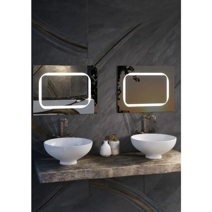 The Jamie LED Mirror by Civis USA, Inc turns your bathroom into a luxurious five-star hotel! Bright LED back lighting shines through interior frosted glass to illuminate your room from all four sides. This is the only mirror in our collection with round corners on a square mirror. It’s components include a 50,000 hour LED strip. Never change a light bulb again! Jamie LED Mirror emits a white, crisp 5,000K color temperature for a clean, efficient atmosphere. This is the best condition for applying make-up because it closely resembles the color spectrum of natural sun light and evenly distributes the light across your entire face! The mirrored border gives you extra reflection, making even the smallest spaces look lavishly larger. Jamie LED can be the center of attention or an impressive accent piece. It has a versatile style that is fitting for any space. You can create the bathroom of your dreams around this awe-inspiring Jamie LED Lighted Mirror by Civis USA.