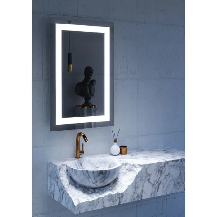 - Easy hanging system featuring an invisible rubber trim for waterproof design. Rectangle mirror shape to hang vertically. 5mm polished edge glass mirror. 50,000 hour LED bulbs. 5,000K color temperature light. UL listed Driver. Requires electrical hardwire installation.