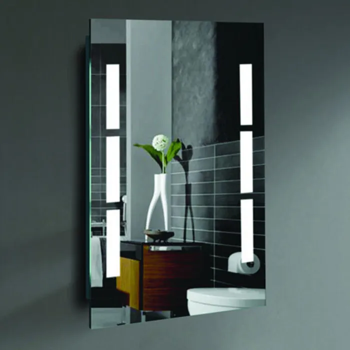 - Easy hanging system featuring an invisible rubber trim for waterproof design. Rectangle mirror shape to hang vertically. 5mm polished edge glass mirror. 50,000 hour LED bulbs. 5,000K color temperature light. UL listed Driver. Requires electrical hardwire installation.