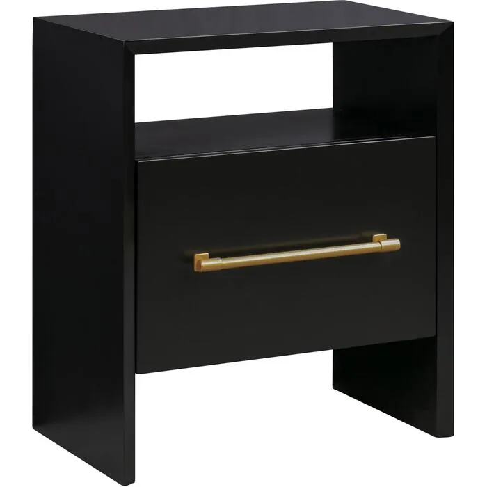 Stunning in its simplicity, this clean-lined nightstand modern appeal and stylish functionality. One drawer and a shelf above provide ample bedside storage. Available in two color options.