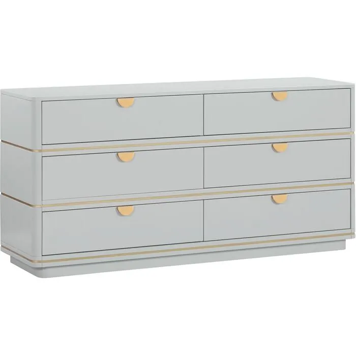 The Julieta 6 Drawer Dresser is an Art Deco masterpiece. The spacious soft-close drawers offer ample storage space, and the acacia wood material ensures great stability. Available in three classic color options, accented with brass pulls and delicate inlay, the Julieta will effortlessly add drama and sophistication to any space.