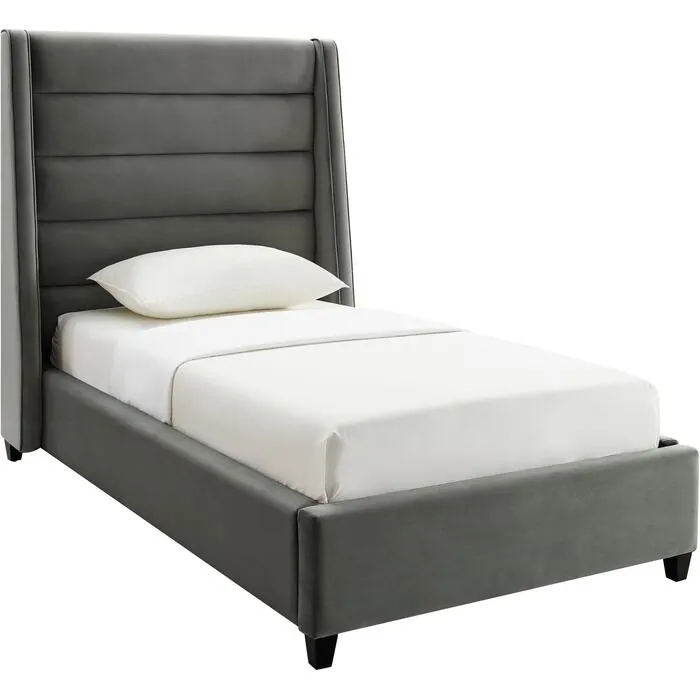 Contemporary Design Furniture Koah Grey Velvet Bed in Twin CDF-B6331