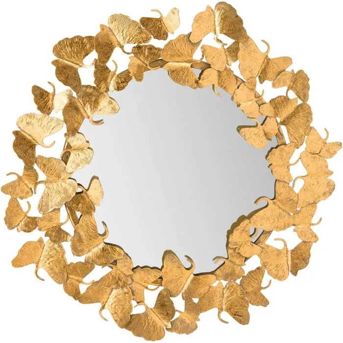 Framed by handcrafted fan-shaped leaves, this whimsical mirror is more than just an accent piece. Each gold leaf is hand hammered and designed and comes together to create a truly unique piece. Available in two sizes.