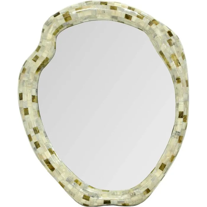 The Josephine Wall Mirror is one enchanting show-stopper. Crafted with a mesmerizing combination of glass and resin, its sculptural irregular shape brings a captivating touch to your space. With a seashell effect that glistens delicately, this mirror becomes a whimsical centerpiece that exudes elegance and artistic charm.