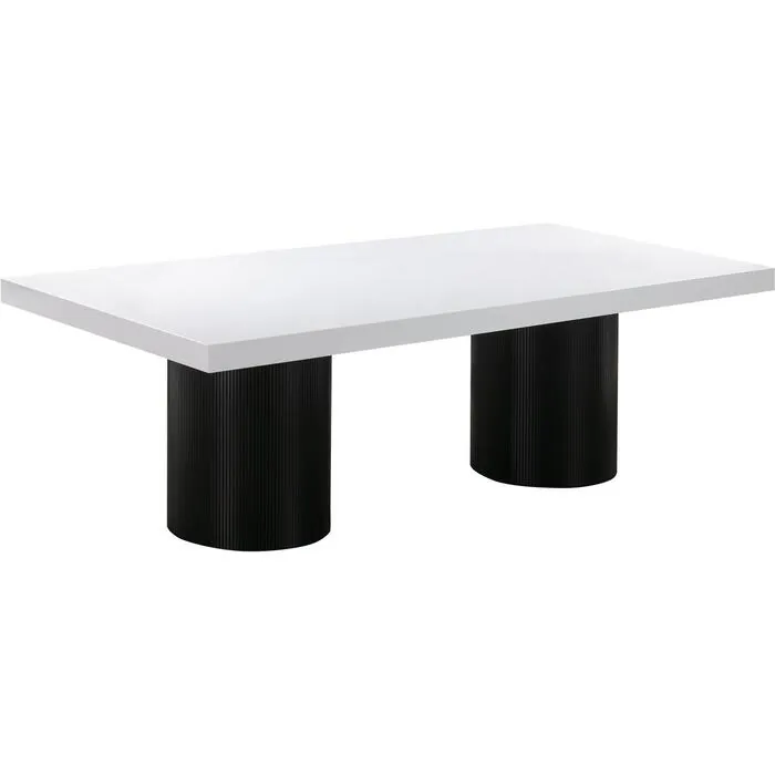 The clean-cut simplicity of the Nova Table with its statement conical legs, makes it the perfect bold yet versatile piece to elevate your dining experience. Featuring a glossy white lacquer top contrasted with 2 beautifully crafted black pedestal legs, this two-toned minimalistic table will undeniably be an accessory to any dining room.